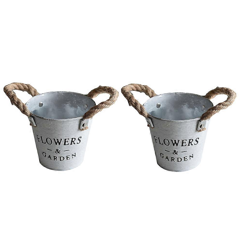 Metal Flower Buckets Home For Garden Decor Assorted Color Storage 2Pcs