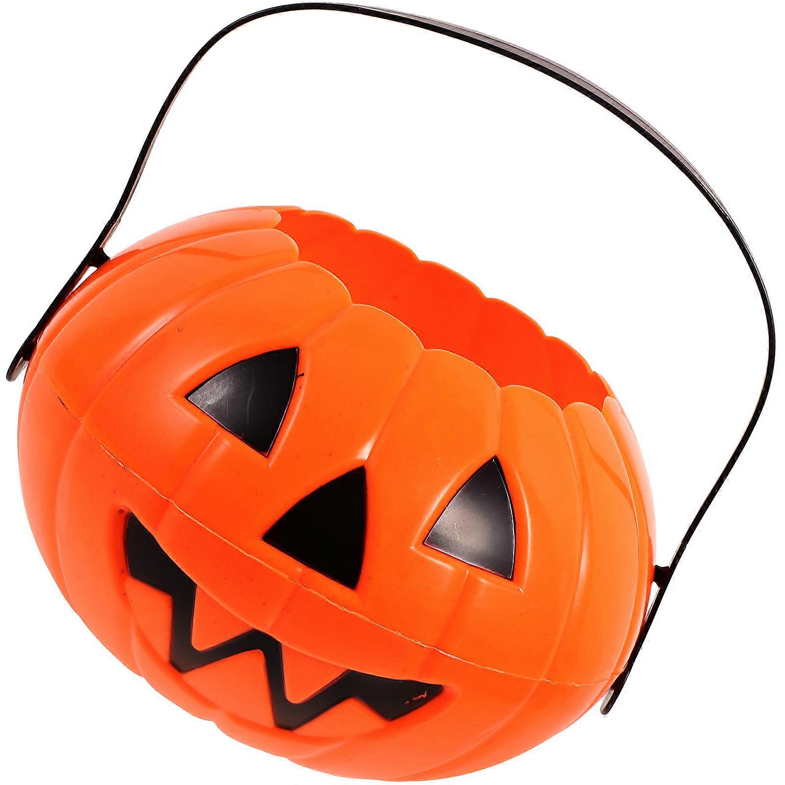 Orange Handheld Candy Bucket Plastic Pumpkin Holder For Halloween Outdoor Lantern 1 Set