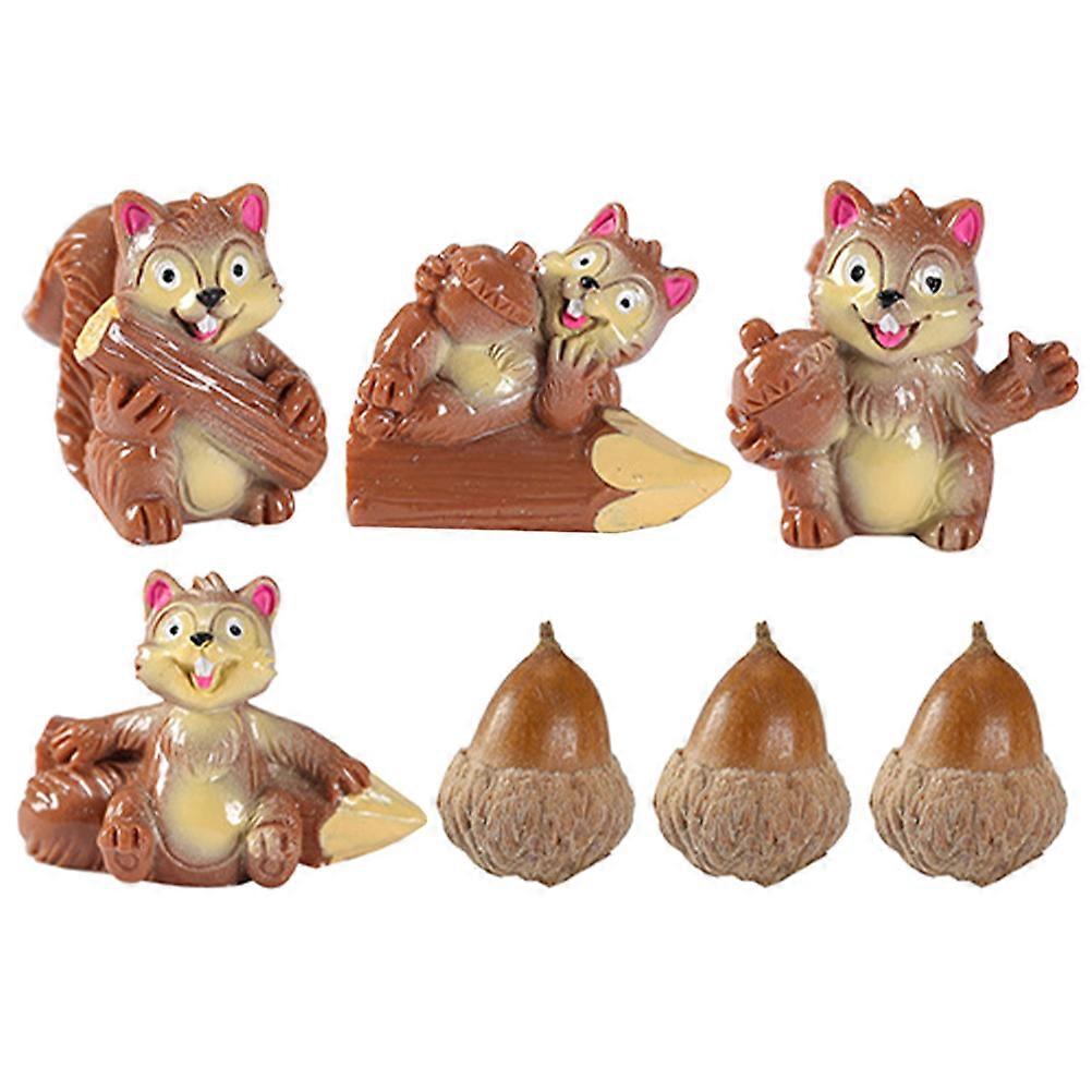 Tiny Squirrel Figures 7Pcs Resin Squirrel Craft For Doll House Decor Assorted Color Decoration