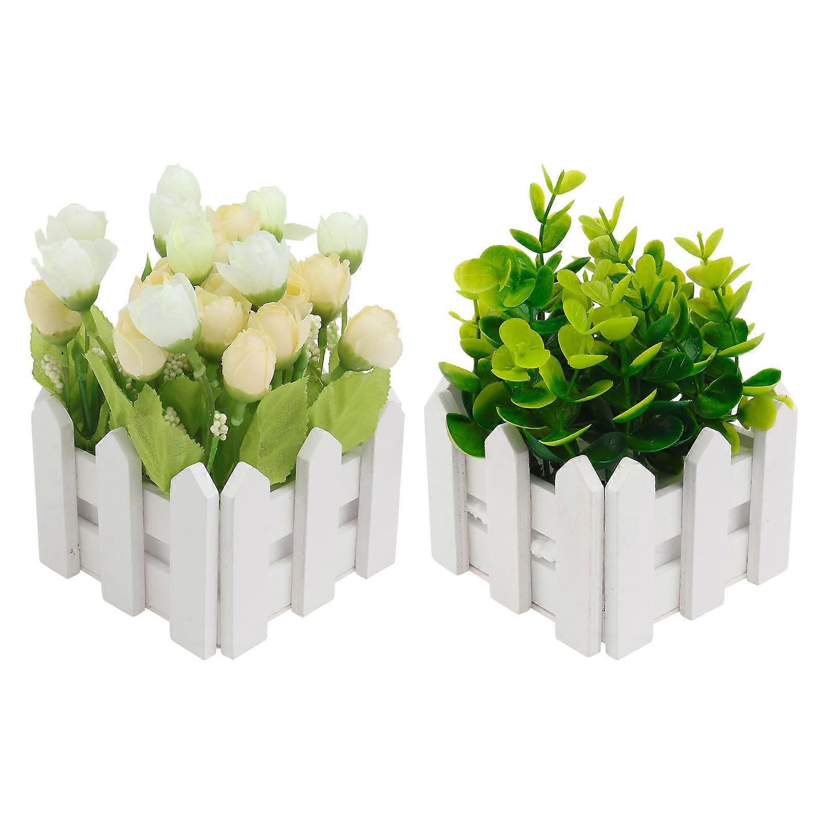 Faux Floral Stems Simulation Flower Ornament Decorative Potted Plant with Fence Eucalyptus Indoor Decoration 2Pcs