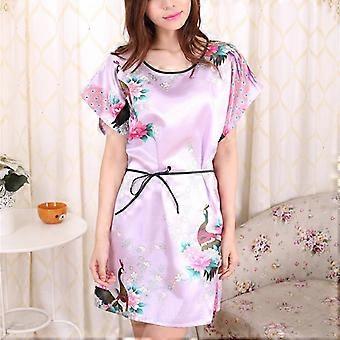 דמוי משי שמלת לילה נשים מידה גדולה שרוולים קצרים פיג'מות קיץ בגדים ביתיים דקים