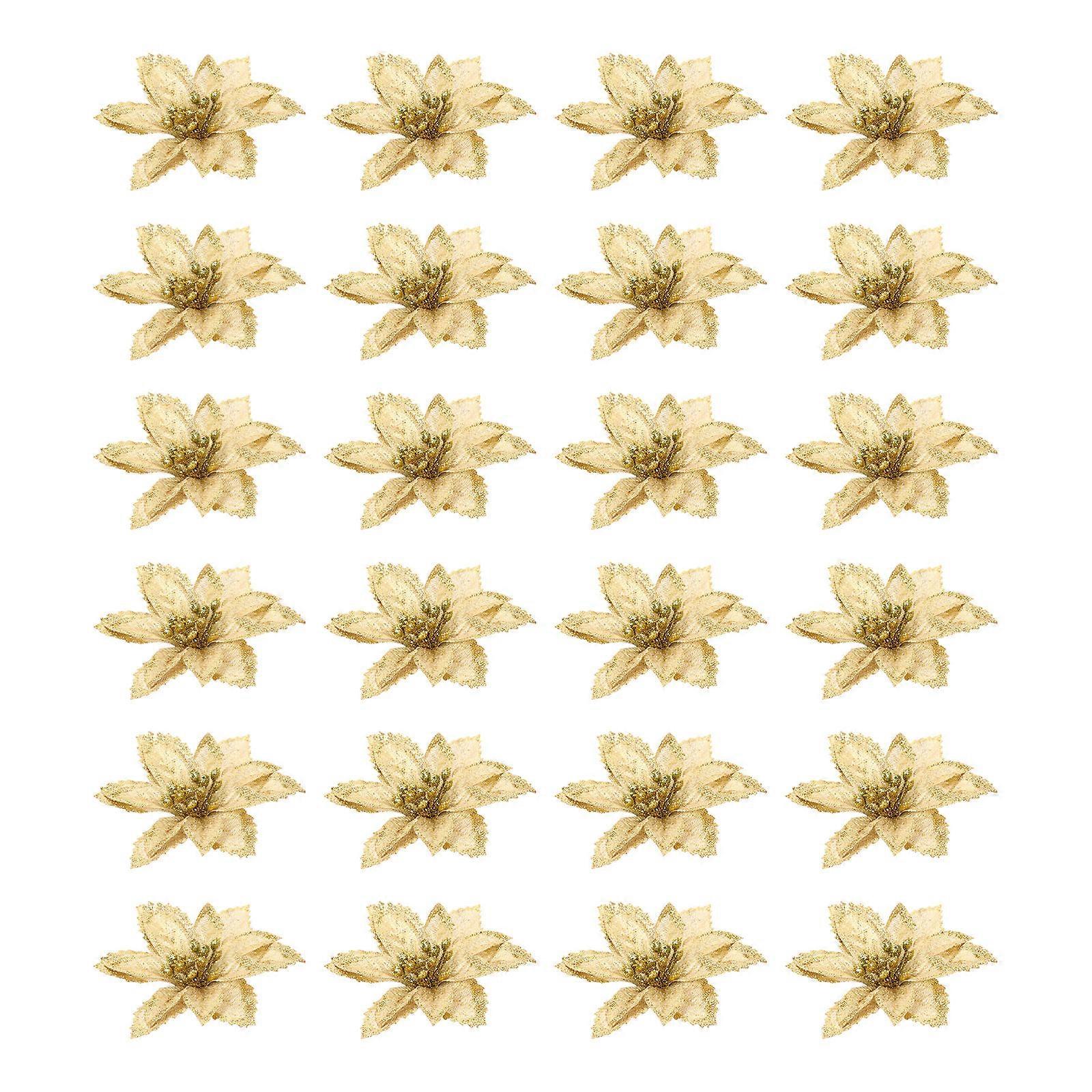 Faux Poinsettia Golden Christmas Flower Ornaments Shopping Mall 9X9X1cm 24Pcs