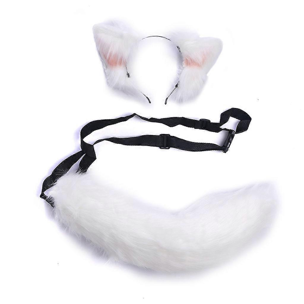 Faux Fur Wolf Ears Headband Furry Animal Tail Cosplay Props Carnival Party Fancy Dress Halloween Costume Accessories White