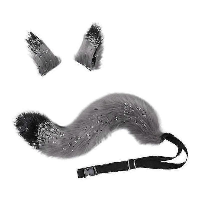 Faux Fur Cat Fox Wolf Tail & Clip Ears Set for Halloween Costume Cosplay Accessory