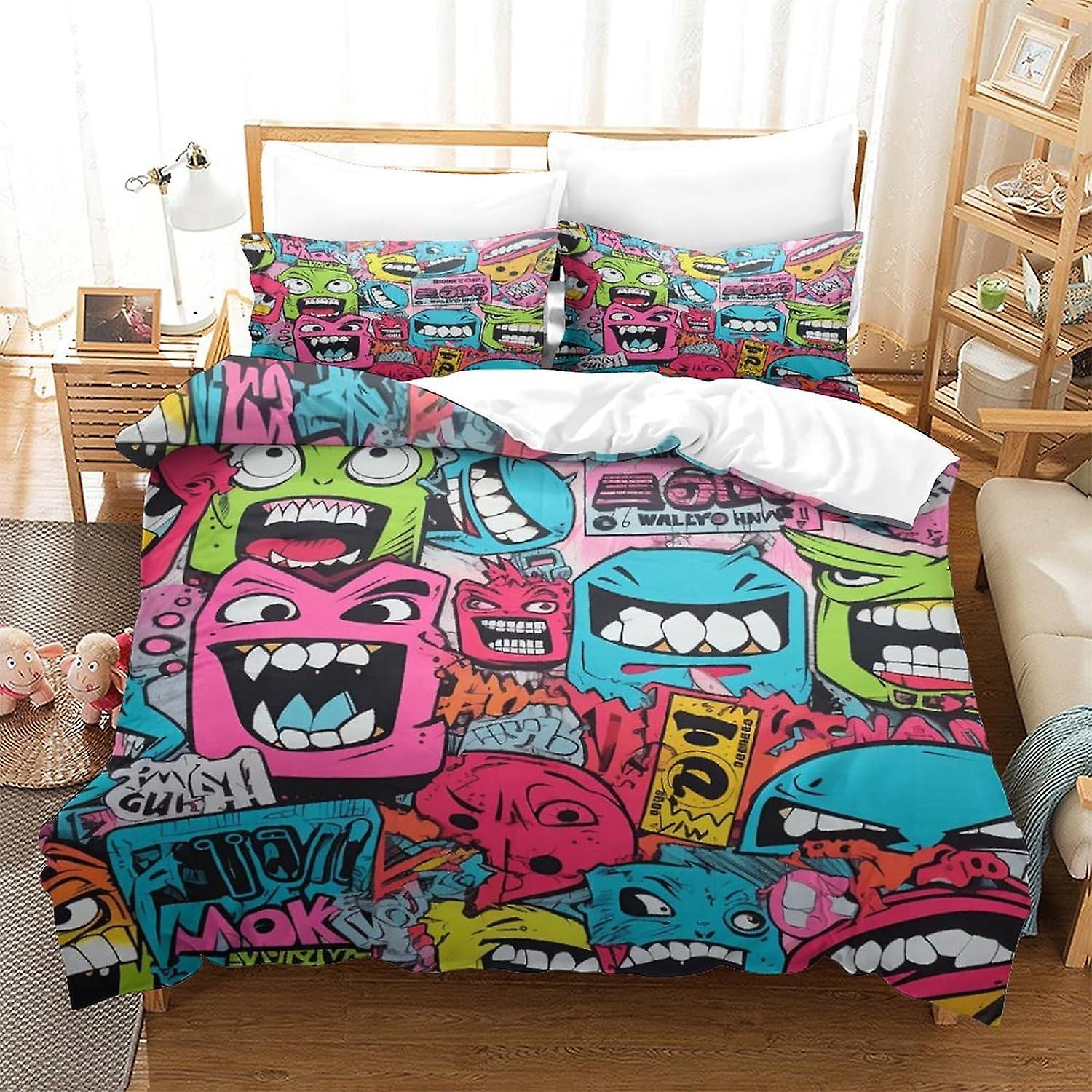 Manga Character Printed Duvet Cover Set Soft Microfiber Bedding Set for Adults Teenager Kids 3Pcs with Zipper Closure for Home Decoration (abstract, K