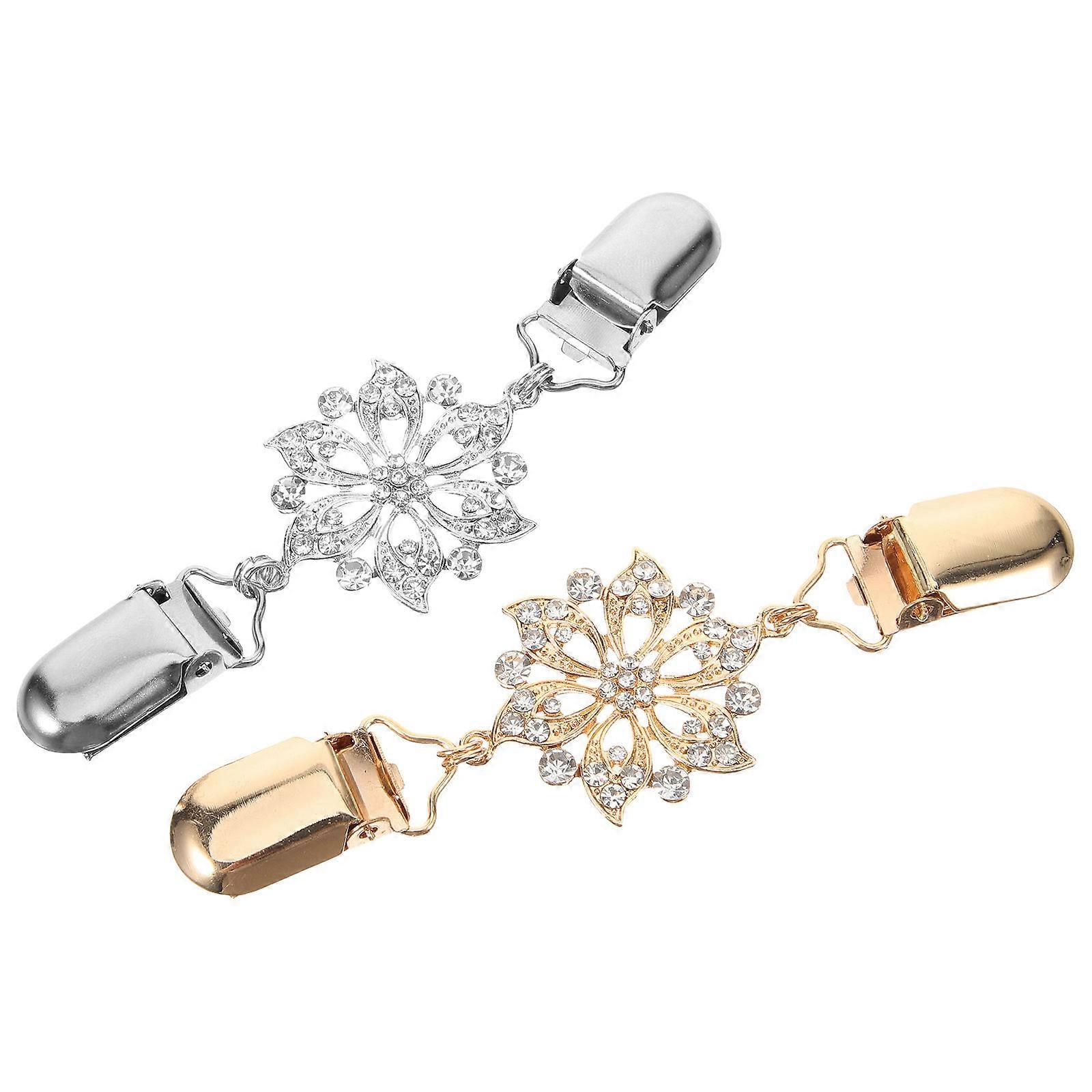 Hollowed Flower Pattern for Scarf Clip 2Pcs with Rhinestone Decoration