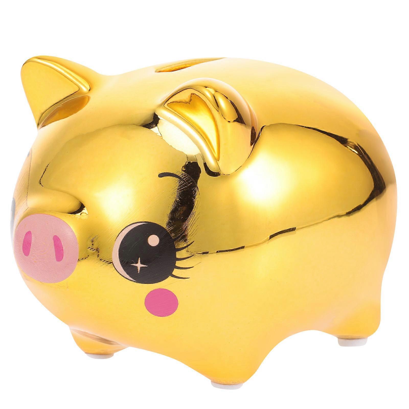 This product is a piggy bank, made of solid materials, safe and . It can serve you for a long time without being easily damaged. The product is an excellent piggy bank that can bring you more convenience, allowing you to have comfortable experience. Features -Color:Golden -Material:Ceramic -Size:11.00X9.00X8.00cm/4.32X3.54X3.14in - Save your change and coins with ease using the generous capacity of this savings bank. - The intricate handiwork and attention to detail make this ceramic savings bank a true work of art. - Whether you prefer a pig, cat, or dog shape, we have a variety of animal options to cater to different tastes. - Our Gold Pig Savings Bank Money Jar is a delightful and charming addition to any space. - The large capacity of this bank allows you to save up a significant amount of coins over time. Package list: 1 x piggy bank