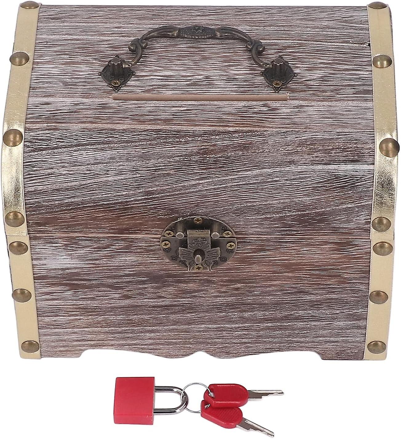 Children's Favorite Small Change Small Money Can Wooden Money Can Gift Money Can Storage Small Wooden Box (medium Red Lock)