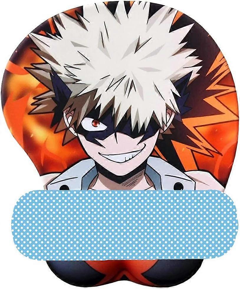 My Hero Academia 3D Anime Mouse Pad with Wrist Support Cartoon Silica Gel Wrist Rest Cushion Pain Relief for Gaming Office (Bakugou Katsuki)