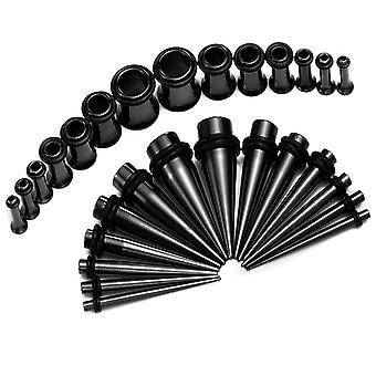 Set 36pc black anodized stretching kit plugs & tapers gauges 14g - 00g