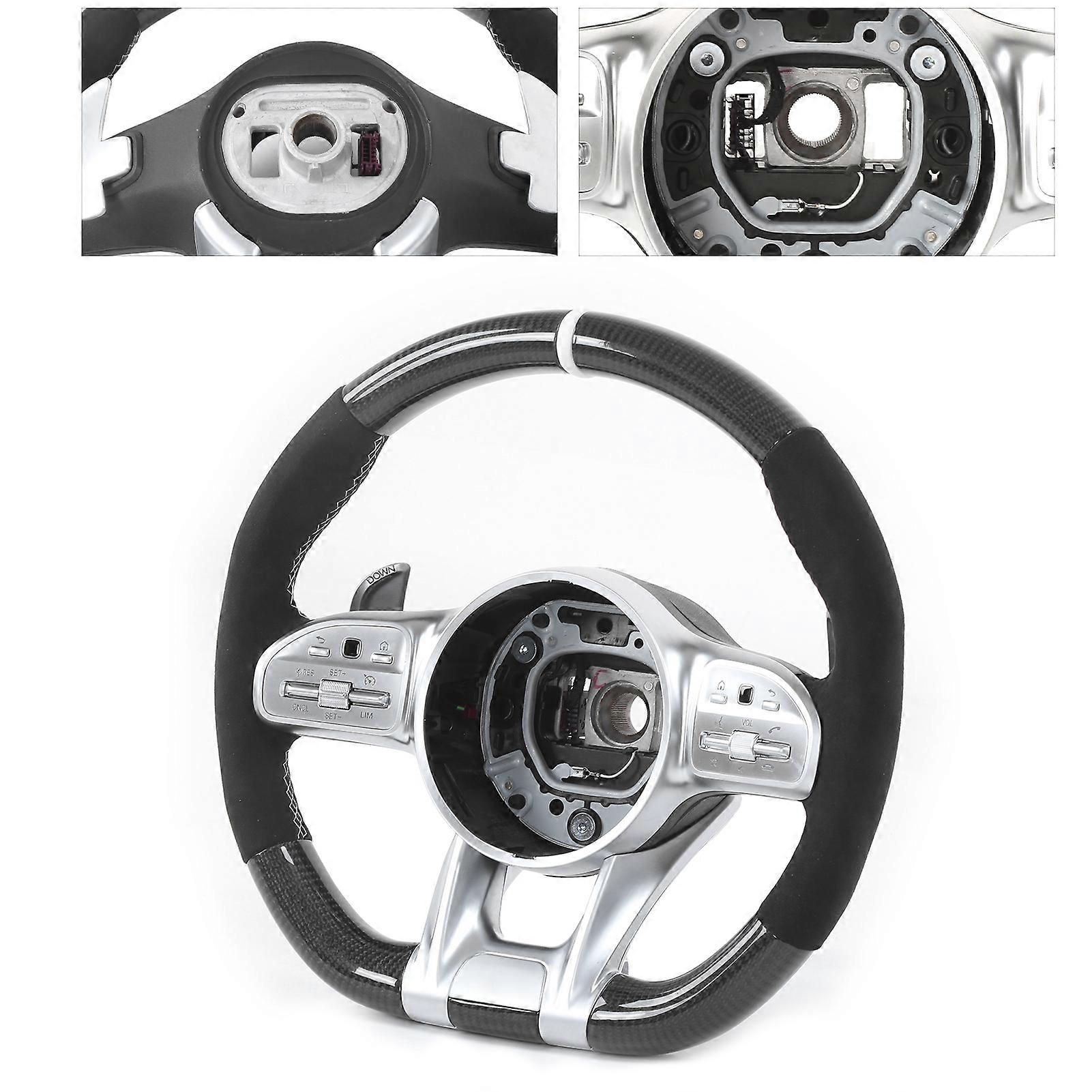 For AMG Performance Carbon Fiber Steering Wheel Suede Replacement for A/B/C/E/S/G/GLC Class C63 E63 2010+ Item Type: Steering Wheel Material: Carbon Fiber + Suede Steering Wheel Stitching: White 12 O-Clock Ring: White (Leather) Steering Wheel Hand Grips: Suede Steering Wheel Bottom: Flat Bottom D-Type Racing Design Finger Ridges: YES Type: for AMG Performance Including: 1 x Steering Wheel 1 x Trims With for AMG Badge 1 x Control Button 1 x for AMG Paddle Shifters Fitment: 2010-2018 ALL OLD MODELS 2019+ ALL NEW MODELS Replacement for A-Class W176 W177 AMG A45 2013-2020 Replacement for B-Class W246 W247 2012-2020 Replacement for C-Class W204 W205 AMG C43 C63 2008-2020 Replacement for E-Class W212 W213 AMG E53 E63 2010-2020 Replacement for S-Class W221 W222 AMG S63 S65 2010-2020 Replacement for G-Class W463 AMG G63 2010-2020 Replacement for GLA-Class X156 H247 AMG GLA45 2014-2020 Replacement for GLC-Class X253 AMG GLC63 2016-2020 Replacement for M-Class W166 AMG ML63 2012-2014 Replacement for GLE-Class W166 AMG GLE63 2015-2020 Replacement for GL/GLS-Class X166 X167 AMG GL63/GLS63 2013-2020 Replacement for CLS-Class W218 C218 C257 AMG CLS63 2010-2020 etc.
