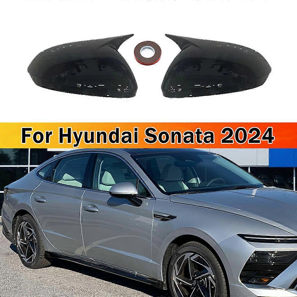 Apply For Hyundai Sonata 11th 2024 Car Rearview Side Mirror Cover Wing Cap Exterior Door Housing Shell Trim ABS Carbon Fiber/ Black