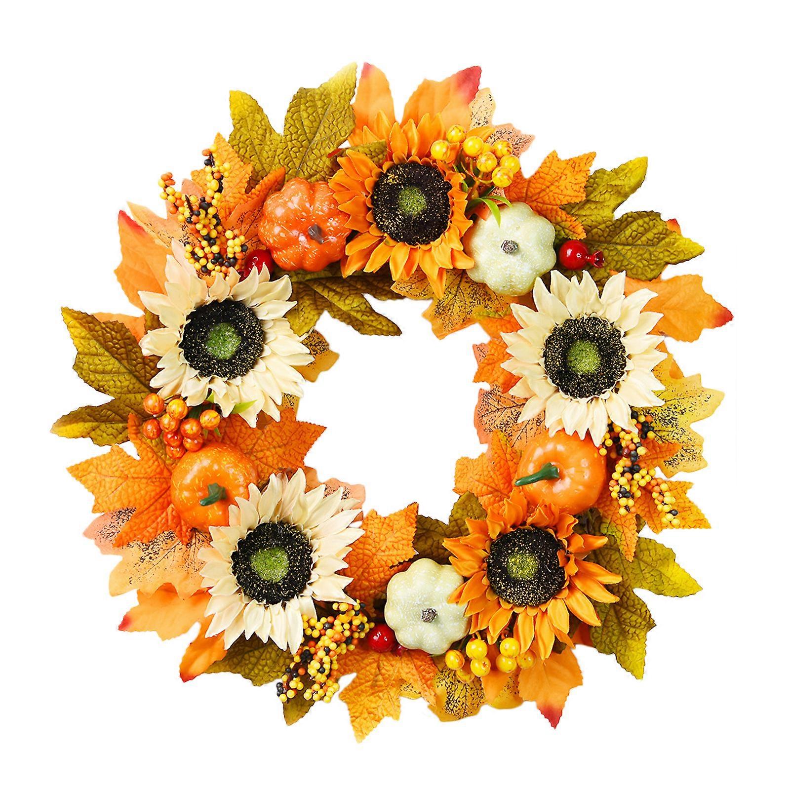 Simulated maple leaf pumpkin sunflower door hanging Thanksgiving Day, Halloween autumn wreath 45cm, rattan ring+foam+cloth