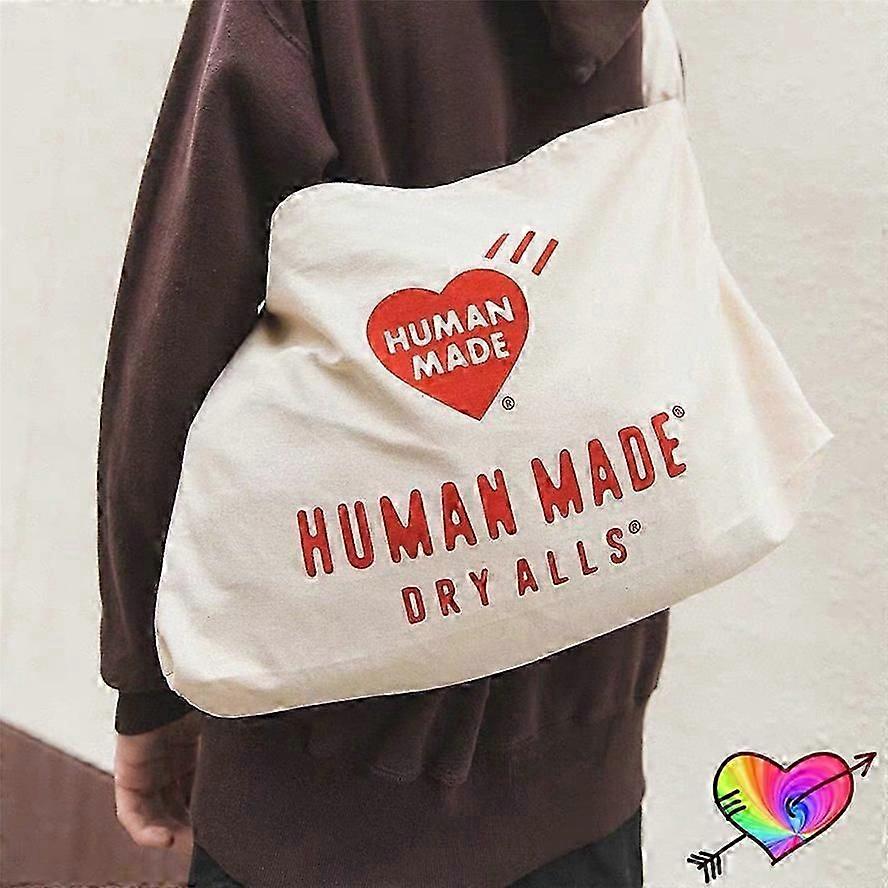 Double Print Human Made Duck Bag 2022 Men Women Khaki Canvas Heart Human Made Bag Classic Logo Snap-fastener Backpacks