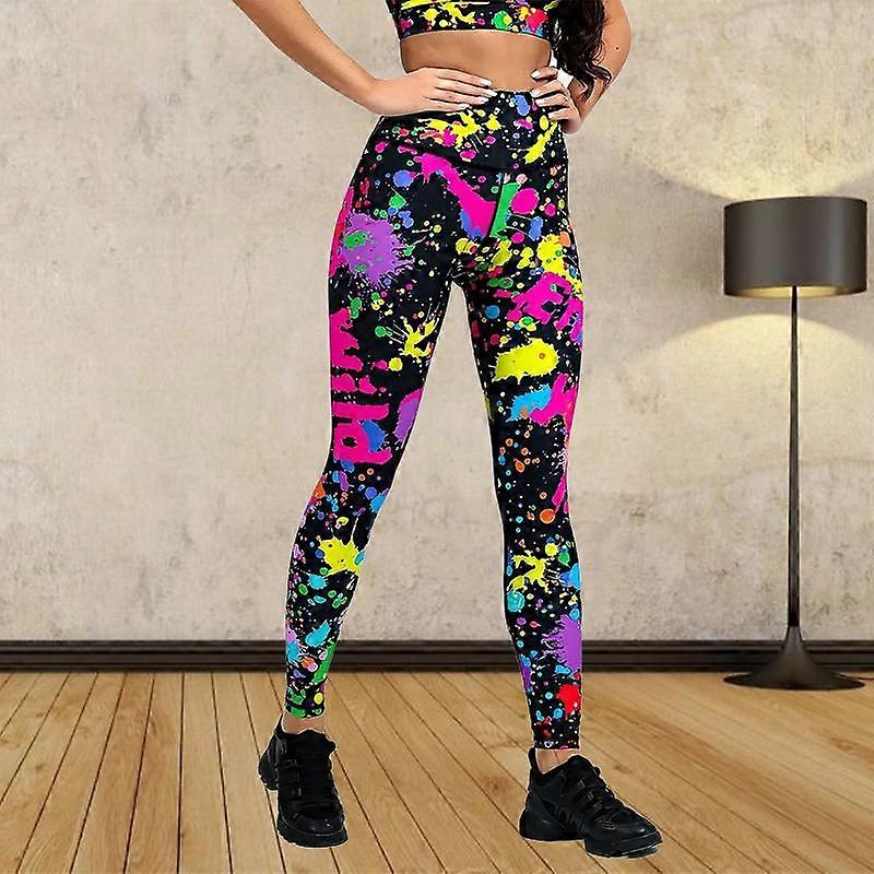Womens Colorful Graffiti Prints Stretch Yoga Leggings Fitness Running Gym Sports Active Pants