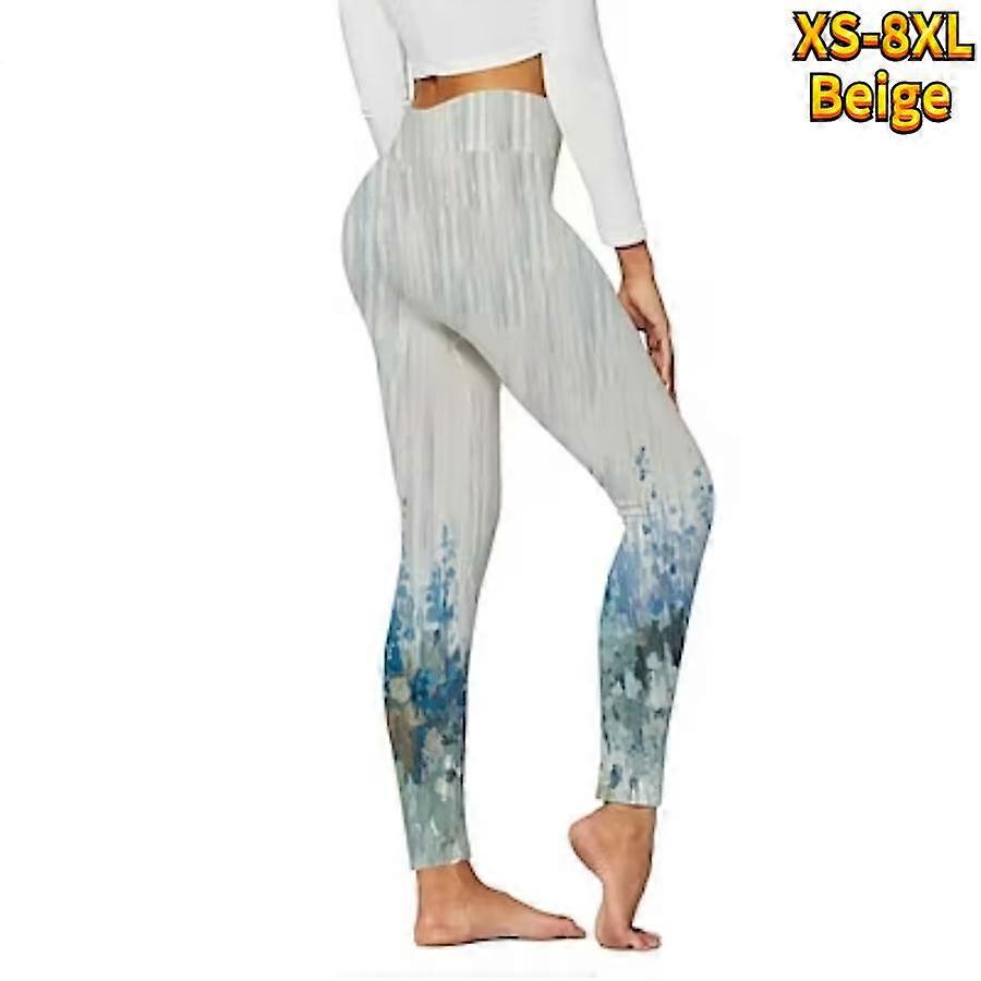 Womens Blue Sculpted Chrysanthemum Prints Stretch Yoga Leggings Fitness Running Gym Sports Active Pants