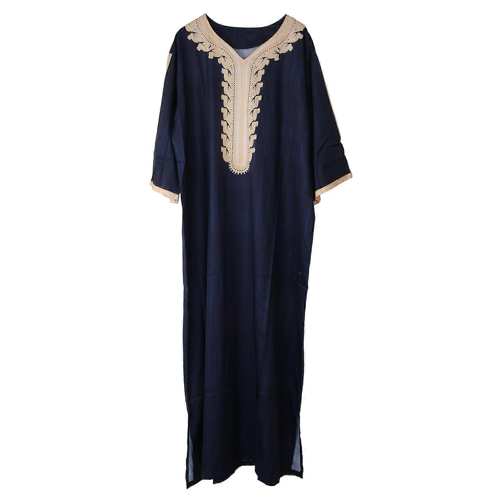 Printting Turn-down Collar Muslim Mens Long Sleeve Thobe Middle East Saudi Arab Kaftan Islamic Abaya Dress Dubai Robes XL