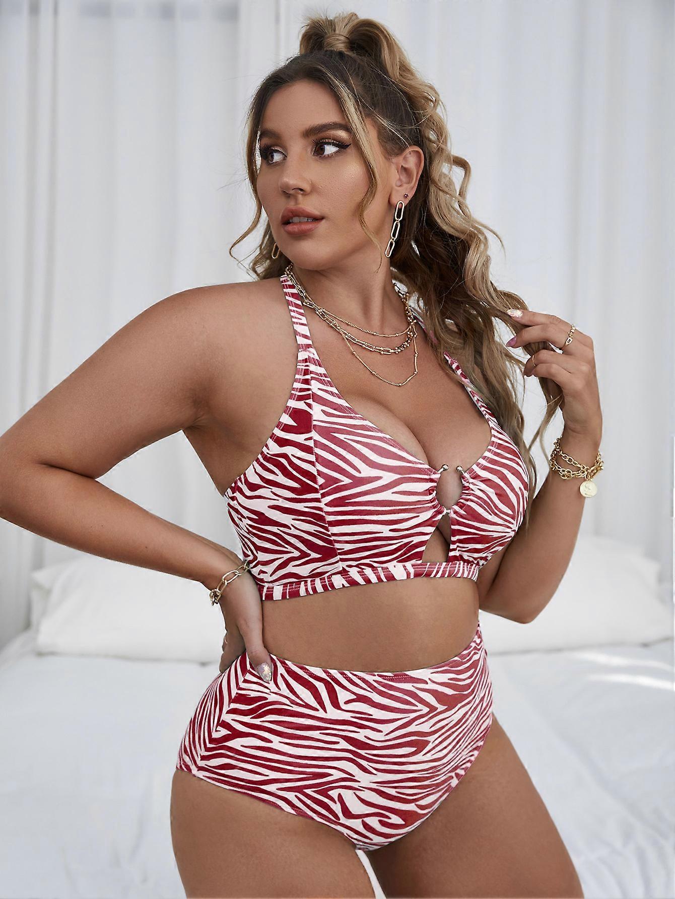 New oversized striped print, multi-color high waisted, backless lace up, hollowed out, sexy split bikini for women Y-Z-T ZD B2