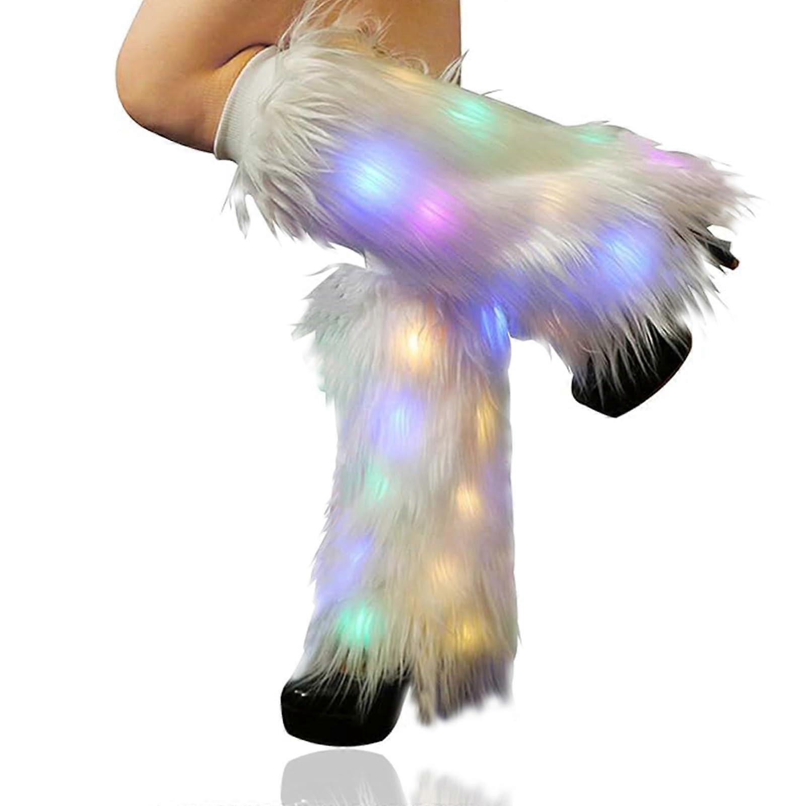 LED Light Up Leg Warmers, Fur Leg Warmers For Women Neon Rave Led Fluffy 80s Sexy Dance Hosiery Leggings For Girls Boot EDM Christmas Costume