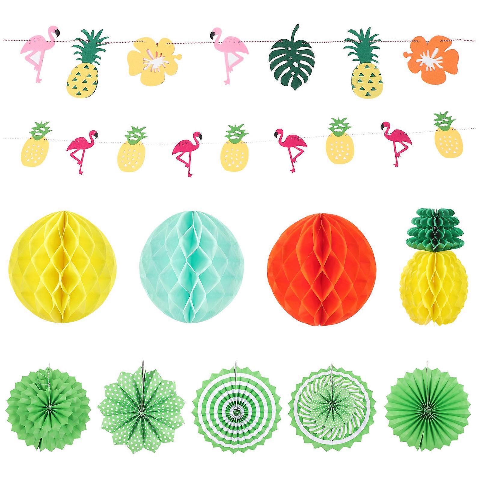 Hawaiian Props Paper Flower Set Stylish Pull Flag For Party Supplies Home Decor Rosy 9.8×9.8×9.8in 1Set