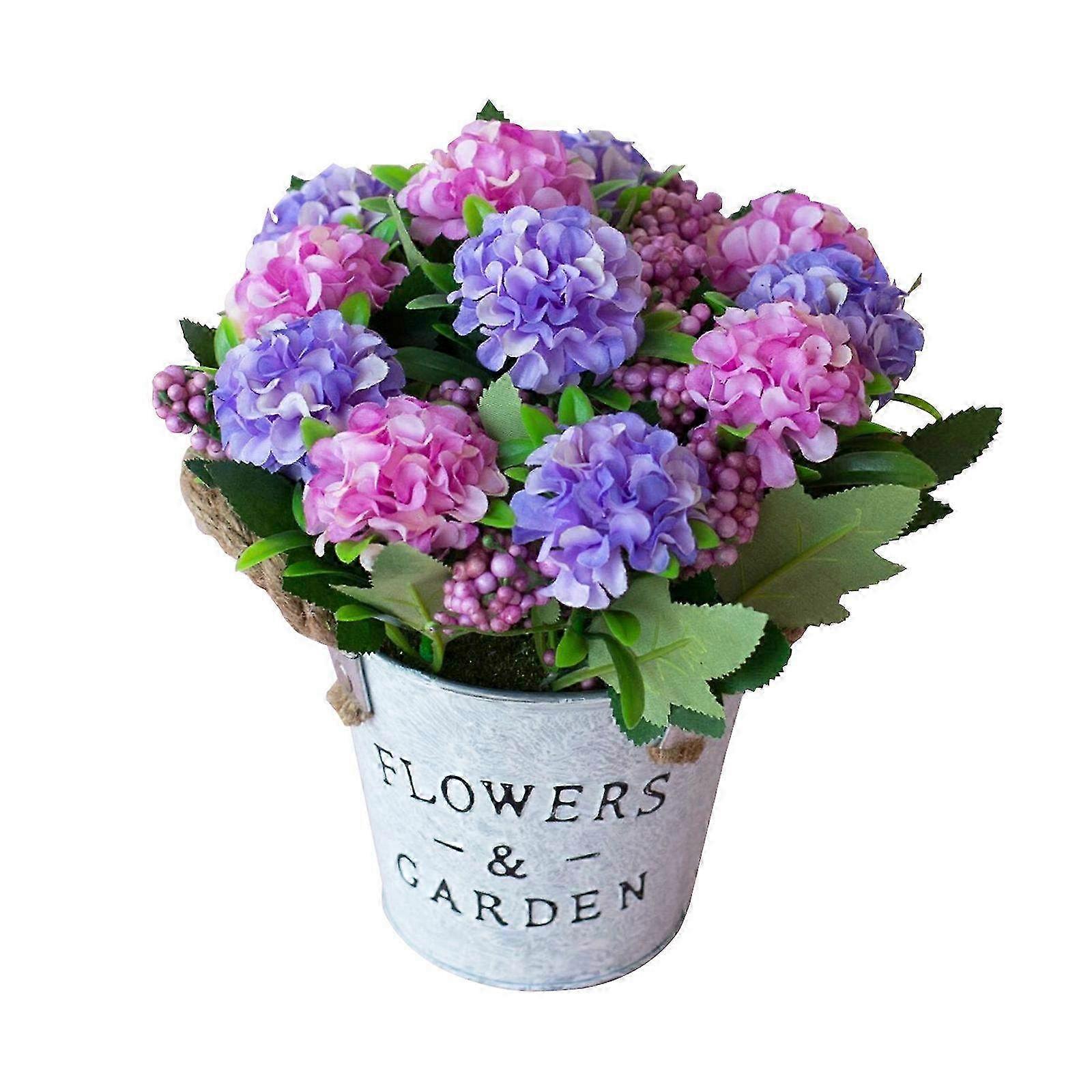 European Style Artificial Purple Hydrangea in Iron Planter - Decorative Flower Arrangement, 25x15cm for Home Decor