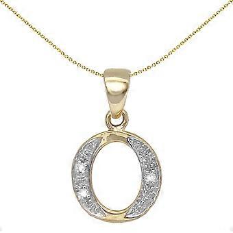 Jewelco London 9ct Yellow Gold Pave Set Round H I2 0.02ct Diamond Identity Dainty Initial ID Charm Pendant Letter O