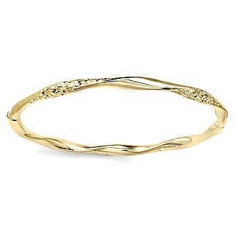 Jewelco London 9ct Gold Diamond-cut Sparkling Twist Oval Bangle Bracelet 4mm