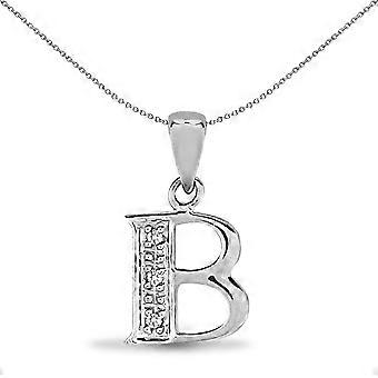 Jewelco London 9ct White Gold Pave Set Round H I2 0.02ct Diamond Identity Dainty Initial ID Charm Pendant Letter B