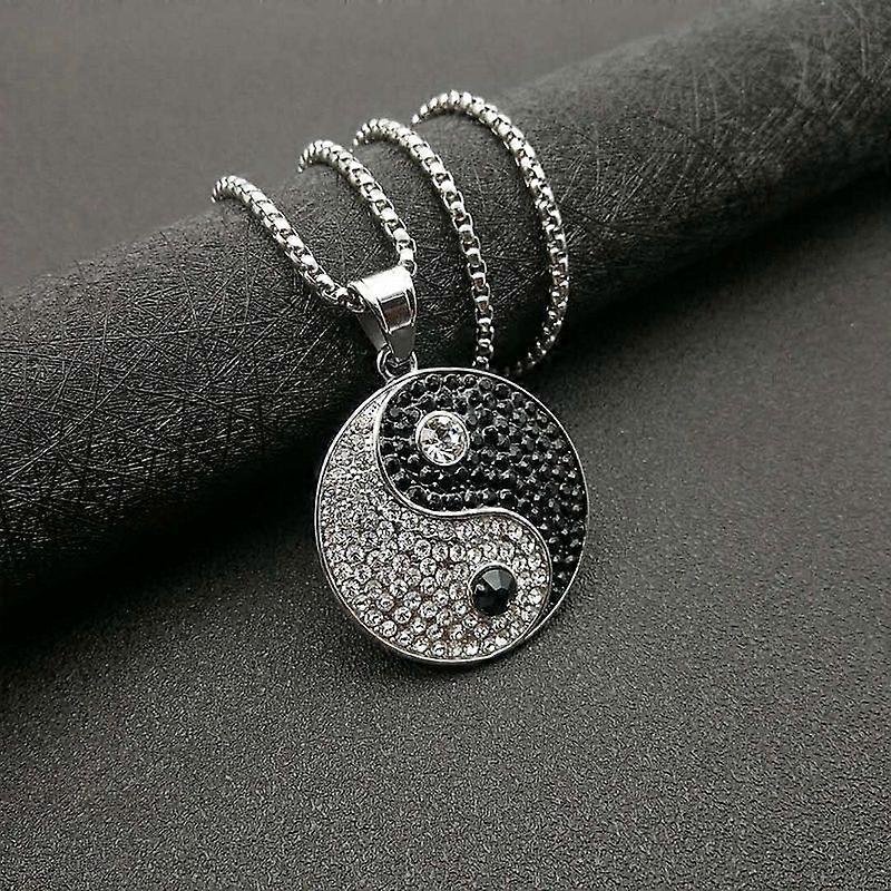 Hip Hop Iced Out Bling Gossip Yin Yang Aumlet Pendant Necklace Gold Silver Color Stainless Steel Chains For Women Men Jewelry