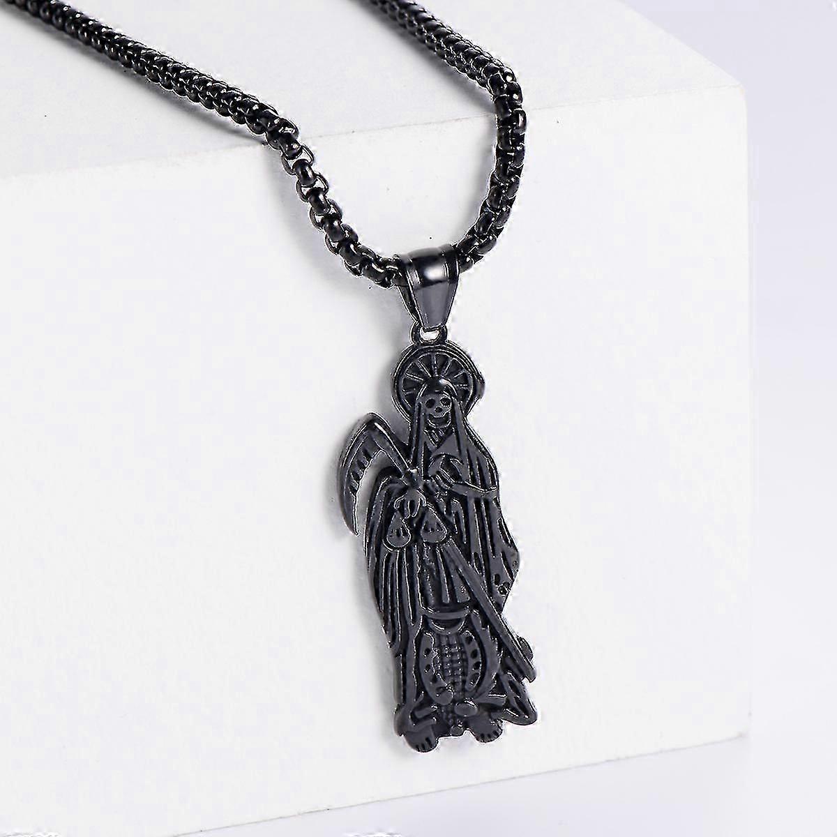 Hip Hop Vintage Golden Holy Saint Death Santa Muerte Skull Biker Pendant Necklace Stainless Steel Men Women Religious Jewelry