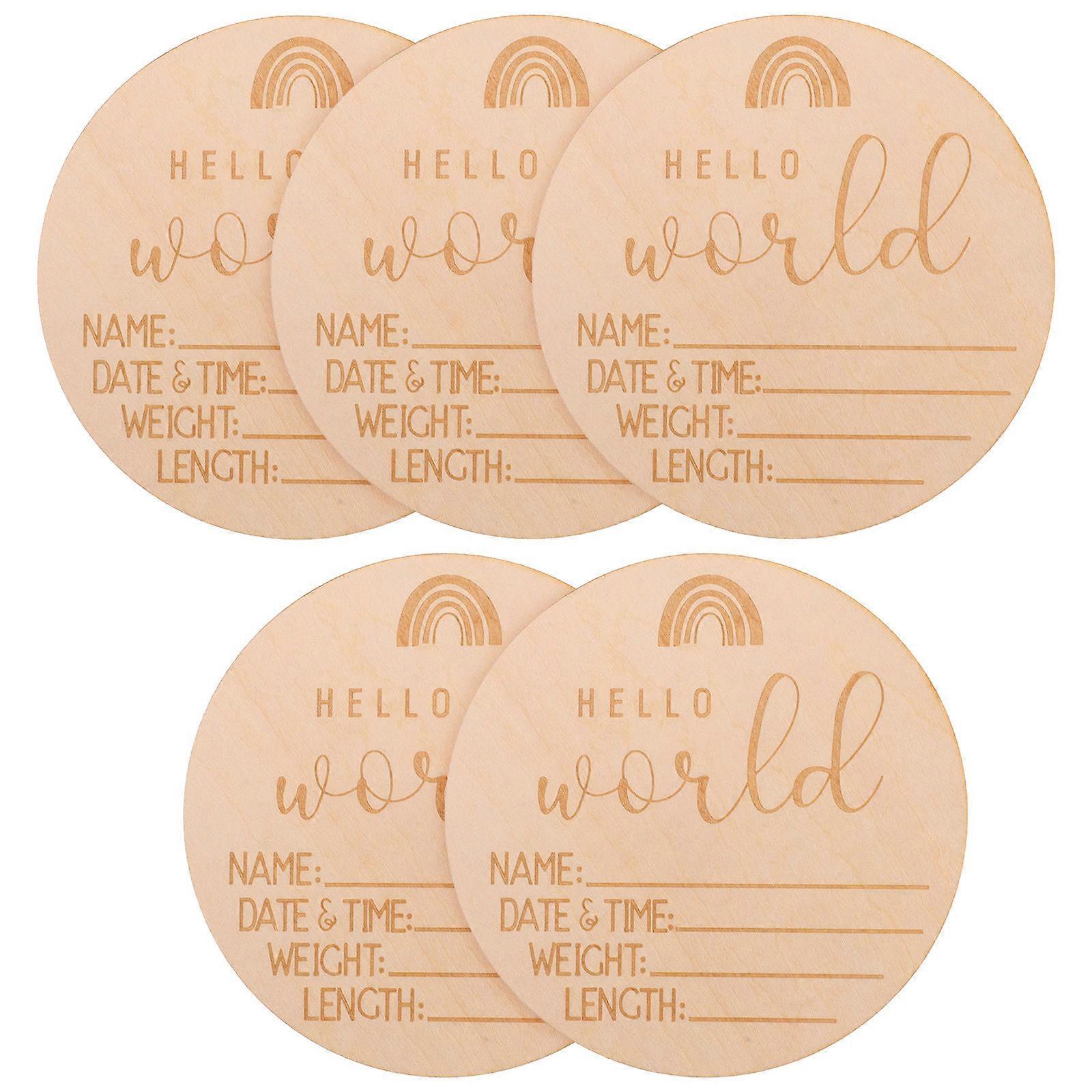 Baby Announcement Sign Boy Newborn Sign Birth Announcement Cards Wood Material 3.93in x 3.93in x 0.12in 5Pcs
