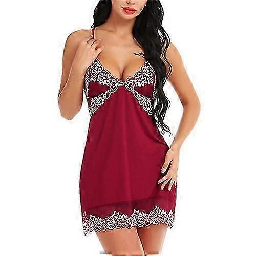 Sexy Lingerie Women Silk Lace Sleeveless Babydoll V neck Nightdress Nightgown Short Sleepwear Night Dress Underwear Plus Size