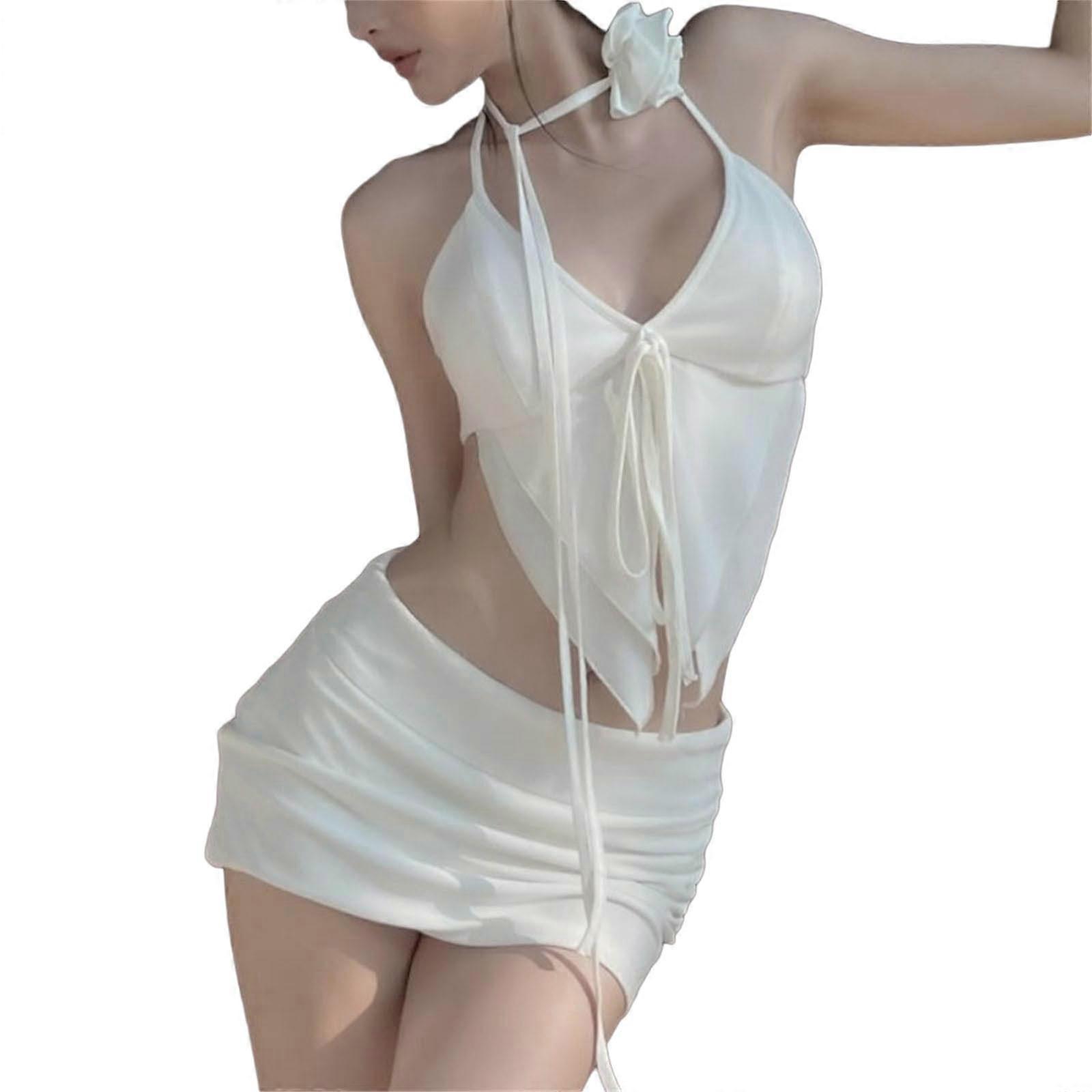 Women's Casual Halters Sleeveless Tank Crop Top and Bodycon Mini Skirt Set 2Pieces Outfit Dress Set Sexy Streetwears White M