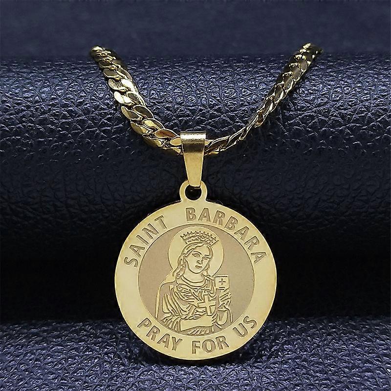 Archangel Saint Barbara Pray for Us Necklace for Women Men Gold Color Stainless Steel Amulet Medal Chain Jewelry colares N3017
