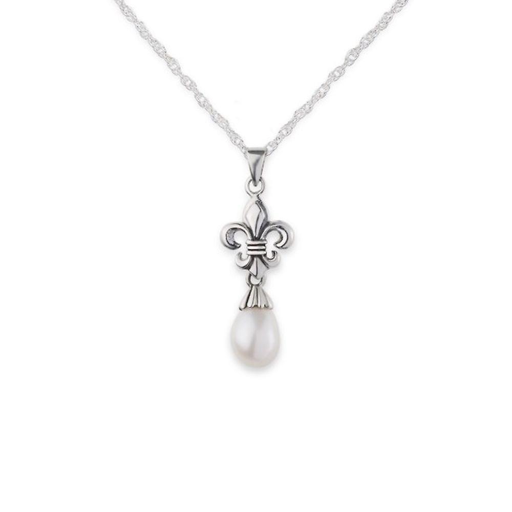 French Royalty Mary Stuart Queen Of Scots Fleur De Lis Lily Shape Necklace Pendant - Pearl - Includes A 18"Silver Chain