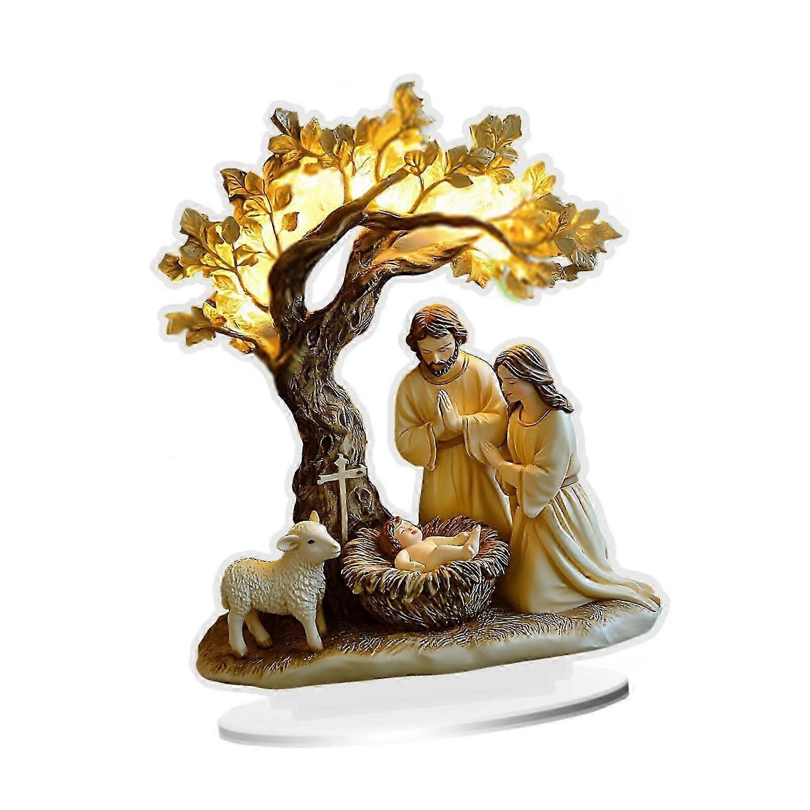 Holy Family 2D Acrylic Sign Nativity Christmas Decoration for Office, Desk, and Cabinet with Moon Design