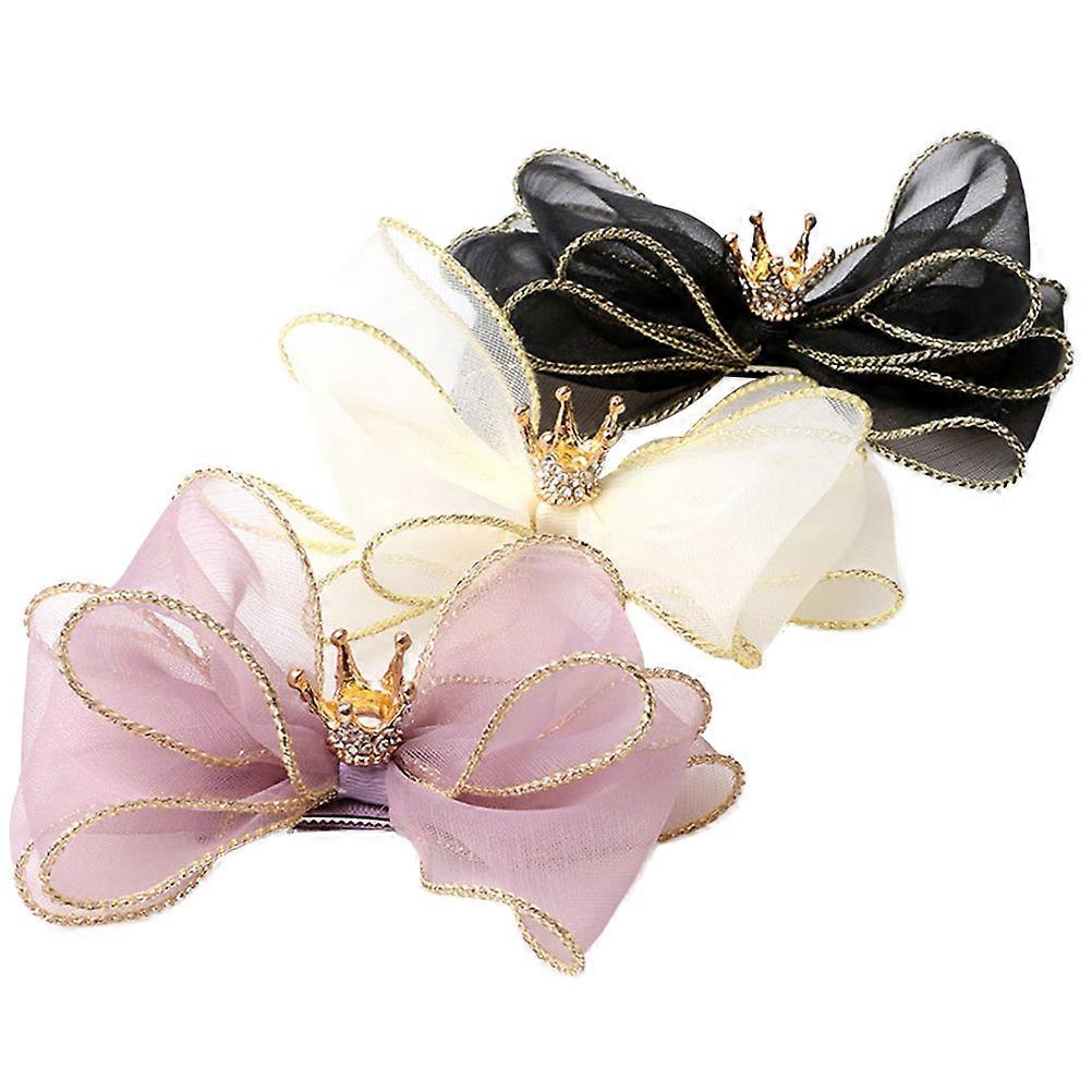 Here's a polished and professional product description based on your input: **3pcs Organza Hair Clips Bow and Crown Design | Creative Hair
