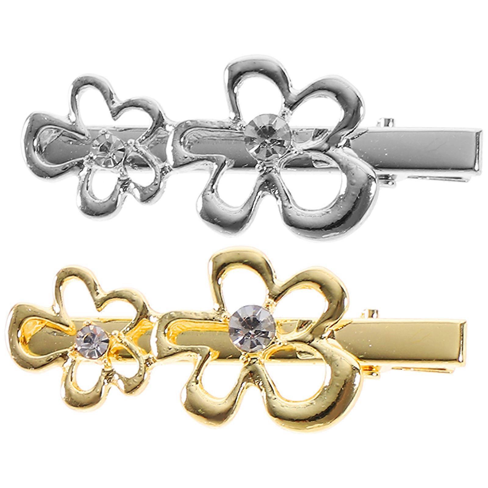 Here's a refined and professional product description based on the title you provided: **2pcs Rhinestone Studded Metal Flower Hair Clips –