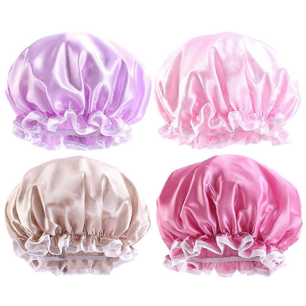 Here's a refined and professional product description based on the title you provided: **4pcs Shower Caps for Women – Double Layer Satin Bathing
