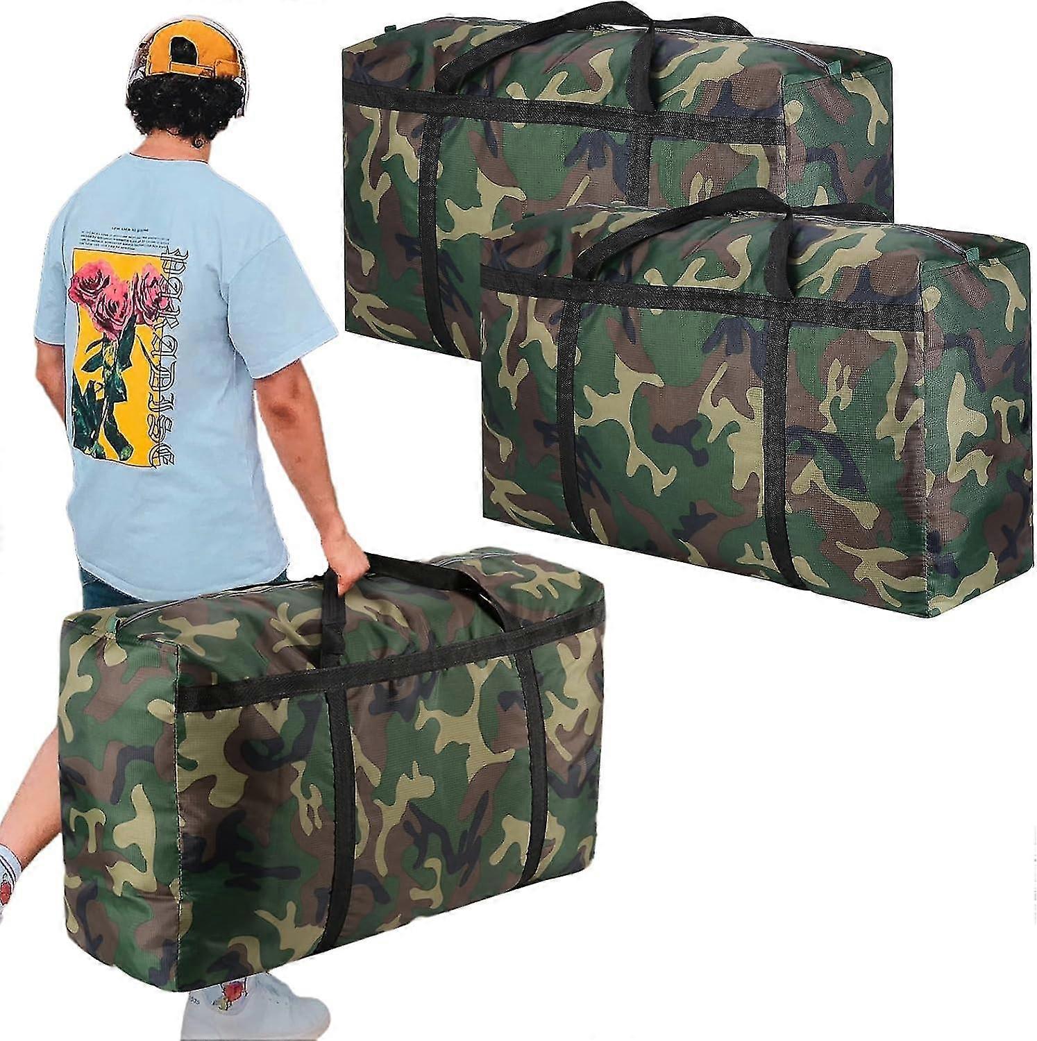 Camouflage 100l Extra Large Moving Bags, Heavy Duty Storage Bags, 600d Oxford Cloth Wrap Around Handles Double Zipper, Waterproof Reusable Convenient