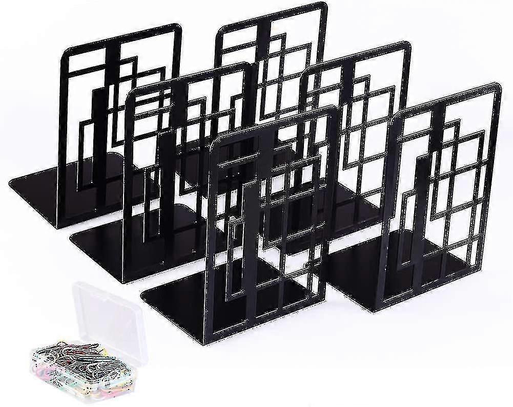 Book Ends,bookends Book Ends, Heavy Duty Metal Book Ends, Geometric Decorative Design, Black Book Supports Non Skid Book Stoppers 3 Pairs, Bookend Hol