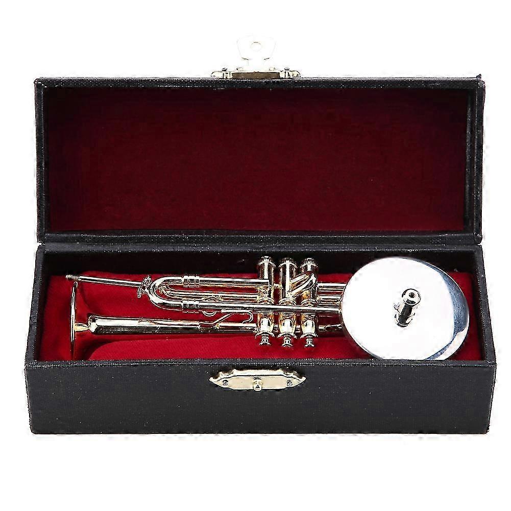 2025 Miniature Trumpet Replica with Stand and Case Gold Plated Instrument Model Musical Ornaments