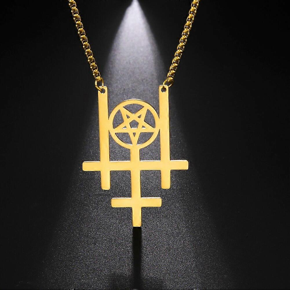 My Shape Triple Inverted Cross Pendant Necklace for Men Satan Occult Pentagram Gothic Satanic Religious Stainless Steel Jewelry