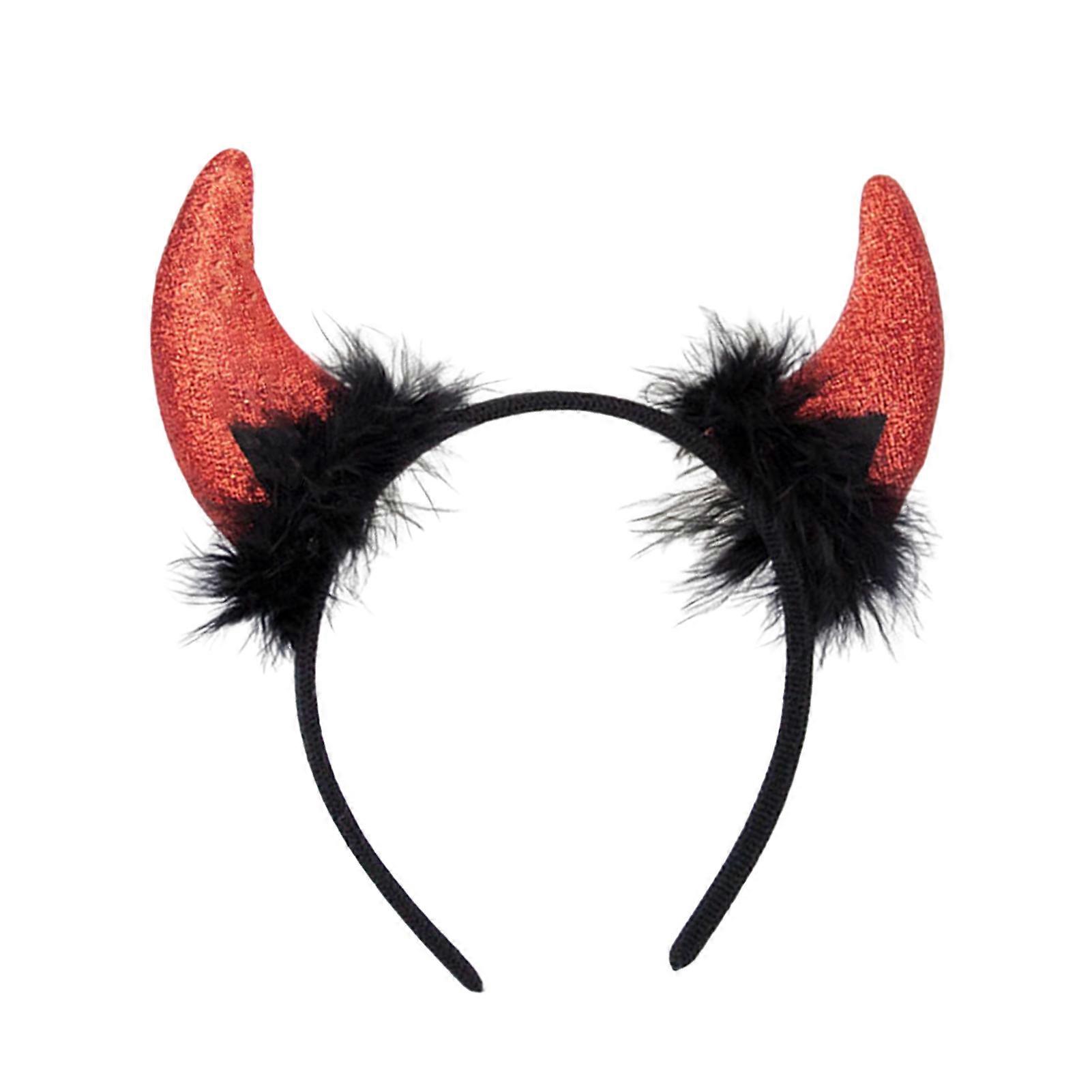 Devil Horn Decor Headband Plush Fabric Handmade Lightweight Elastic Design Hair Hoop Cosplay Parties Halloween Accessories
