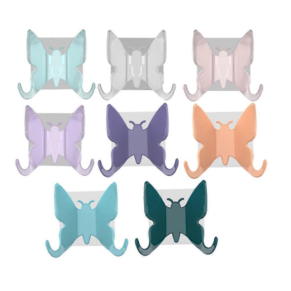 Butterfly Shaped Decorative Hooks For Bathroom And Kitchen Adhesive Design Suction Cup Holder Assorted Color 8Pcs