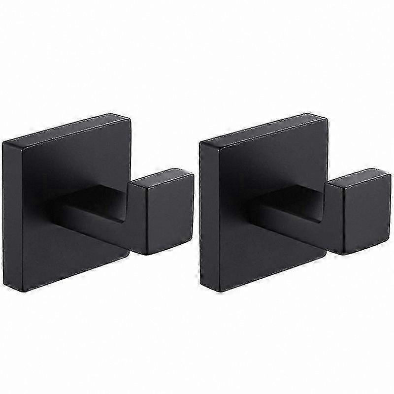 Matte Black Stainless Steel Towel Hooks, Rust-Proof Wall Mounted Coat Hangers for Bathroom and Kitchen, 2 Pack