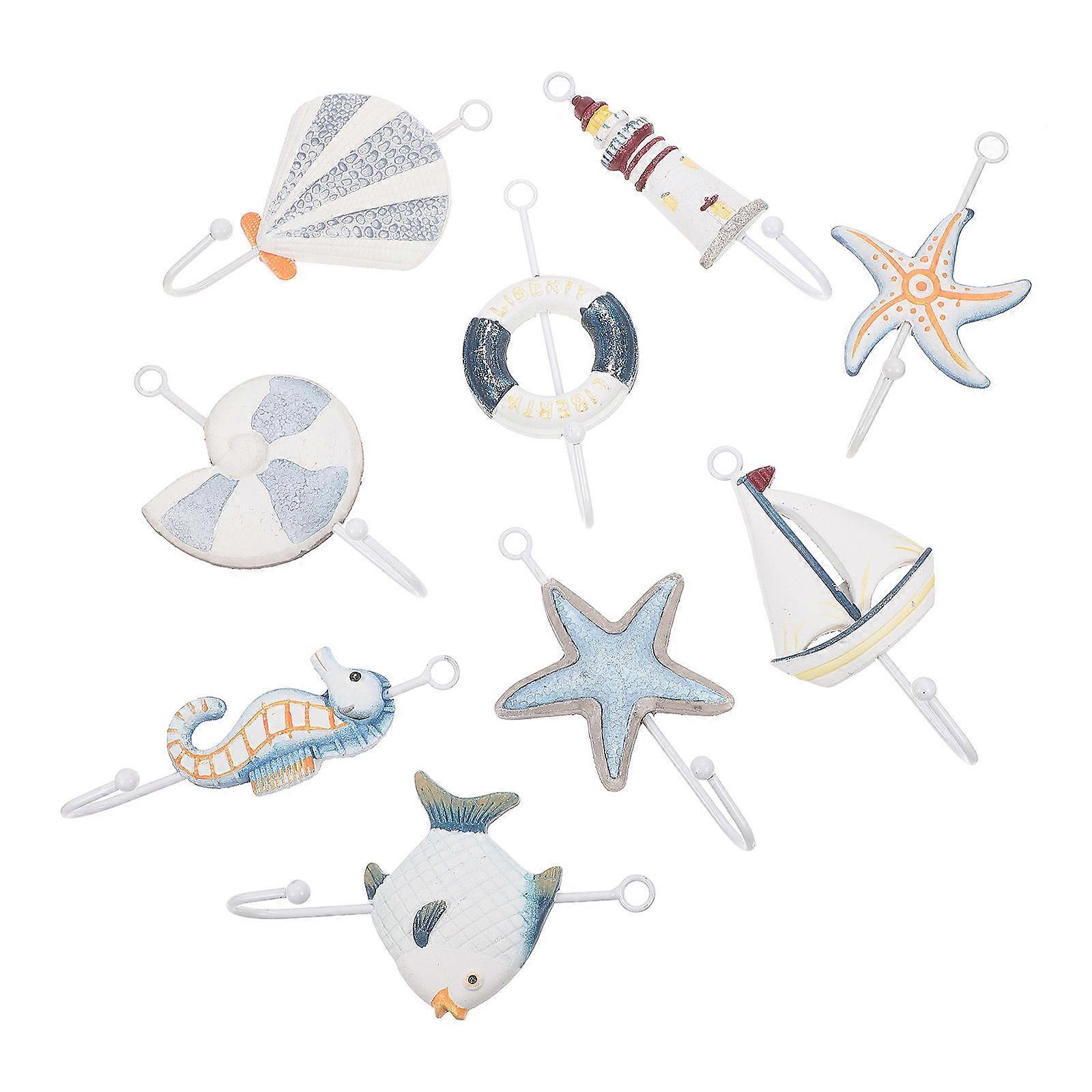 Sea Themed Decor Hooks Traditional Coat Hooks Iron Material Wall Decoration 9Pcs