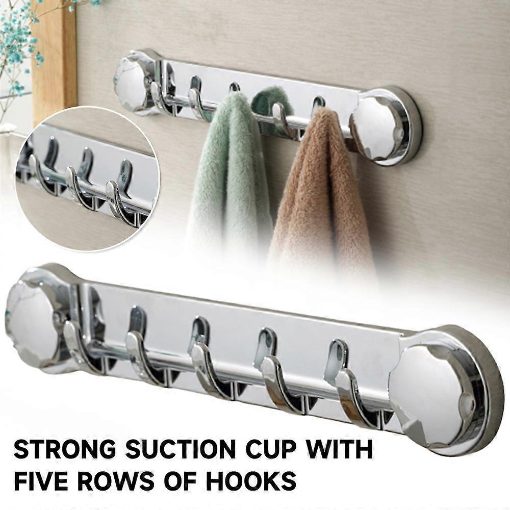 Multifunctional Bathroom Wall Hooks, Powerful Suction Cup Drill-Free Wall Mounted Rack Robe Coat Bath Towel Hooks Hanger Rail Bar