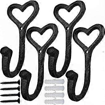 Durable Heart-Shaped Wall Hooks, 4-Pack Cast Iron Coat Hangers for Bags, Towels, Keys, Hats, and More