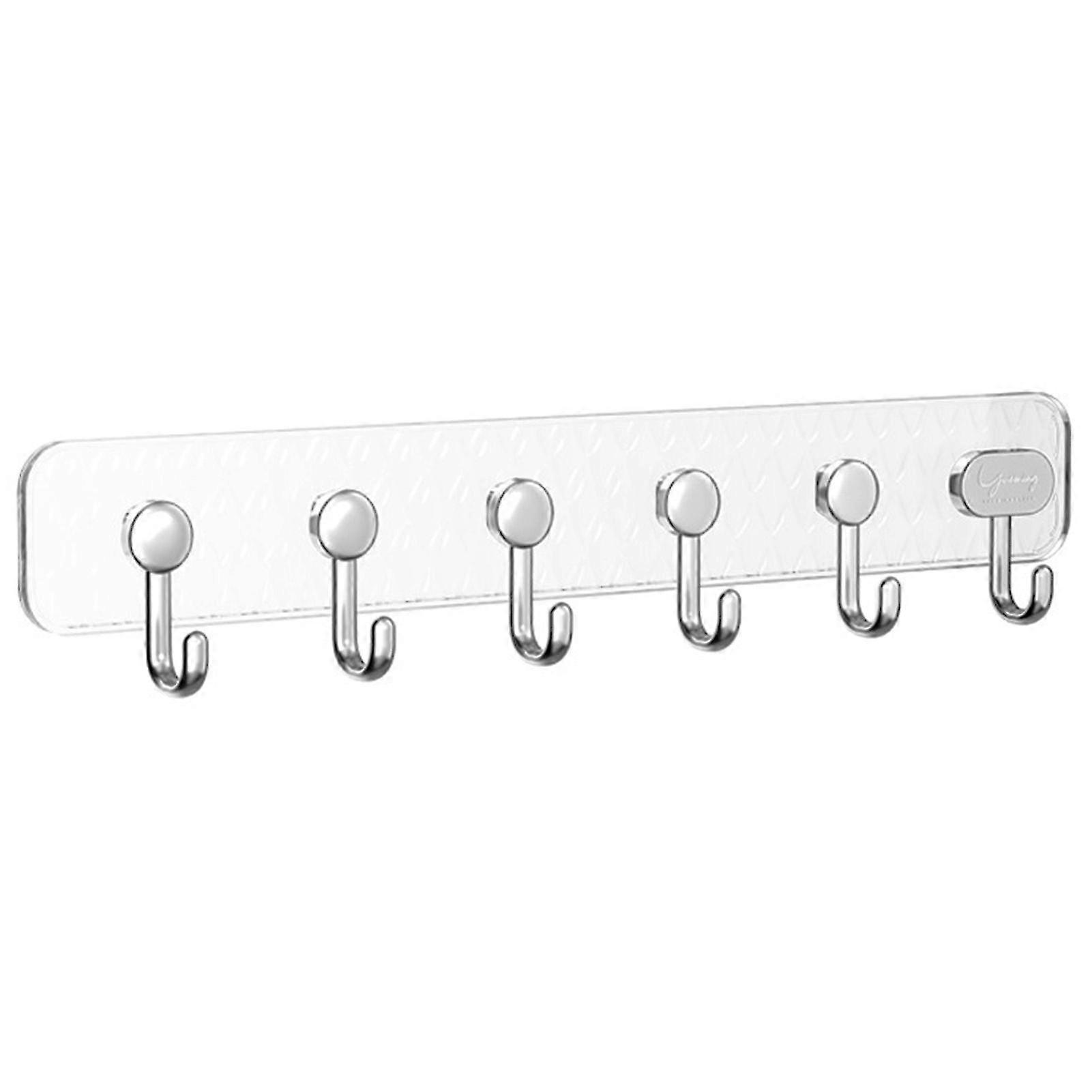 Multifunctional Self-Adhesive Wall Hooks Seamless Punch-free Installation Storage Hanger with 6 Hooks Kitchen Bathroom Strong Row Hook Organizer for C